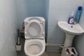 Общий санузел с душем и туалетом, который обслуживает три комнаты.